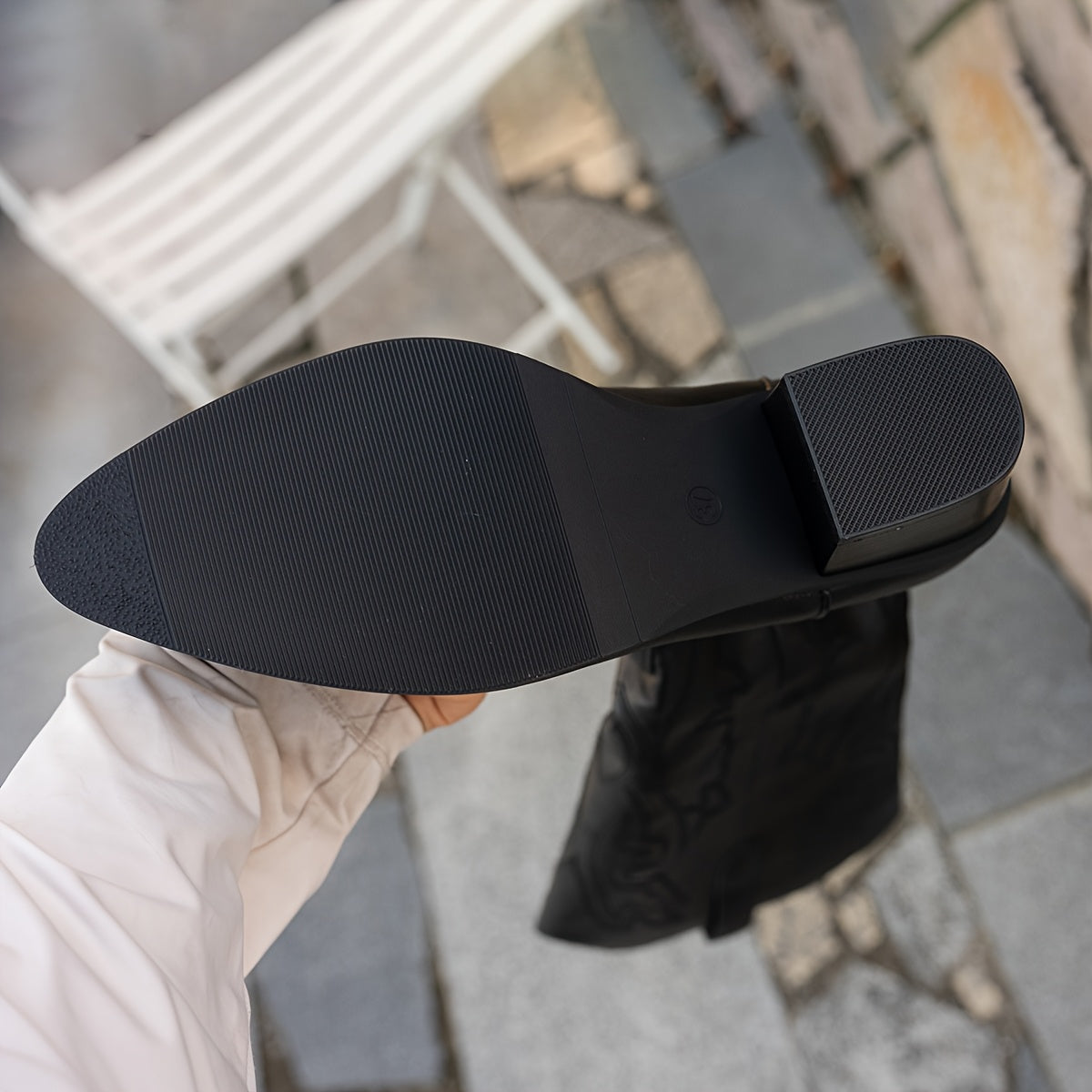Timeless western style meets elegant detail. These boots feature a pointed toe and sturdy block heel, enhanced by subtle embroidery for a touch of sophistication—perfect for any season.